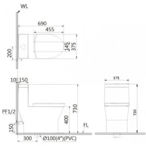 - Kích thước: 690 x 375 x 730mm (dài x rộng x cao)