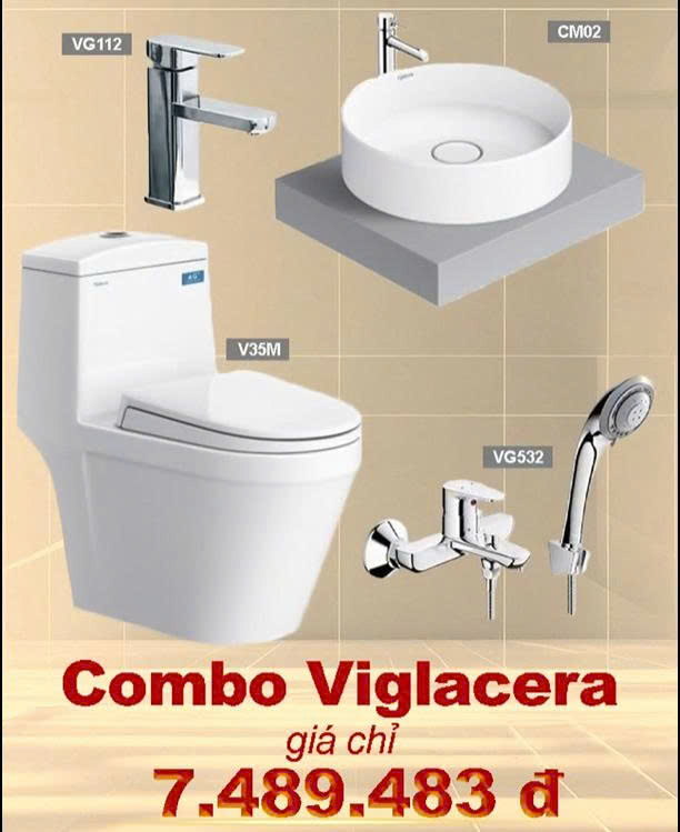 Bộ thiết bị vệ sinh Viglacera combo 4 gồm: