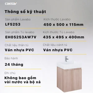 - Chậu rửa mặt CAESAR LF5253 liền tủ lavabo EH05253AW7V của hãng thiết bị vệ sinh Caesar
