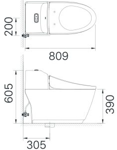 - Tâm thoát: 300mm (+-5)