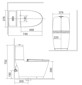 - Kích thước (DxRxC): 746x376x752 mm