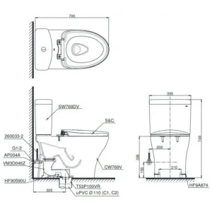 Thông tin bồn cầu TOTO CS769DRW18 nắp rửa điện tử