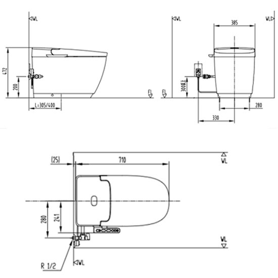 Bản vẽ kích thước bồn cầu điện tử Inax AC-816VN