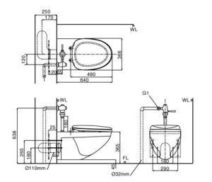Thông tin của bồn cầu treo tường INAX AC-22P+CW-H20VN/BW1:
