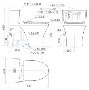 Tính năng bàn cầu 1 khối HL2 Viglacera nắp êm V687
