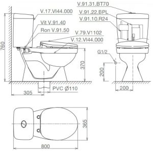 - Bàn cầu Viglacera V144 hai khối (két rời) kiểu dáng đặc biệt đến từ thương hiệu thiết bị vệ sinh Viglacera