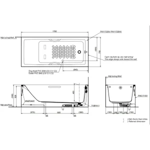 Bản vẽ kỹ thuật bồn tắm TOTO PAY1725HVC