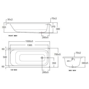 Bản vẽ kích thước bồn tắm nằm 70280 American 1.5 mét