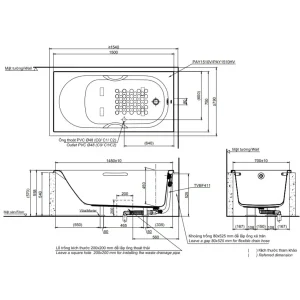 Bản vẽ kỹ thuật bồn tắm TOTO PAY1515HVC