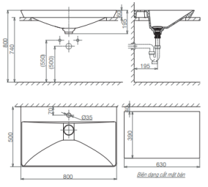 Kích thước : D800 * R500 * C195 Màu sắc : Trắng