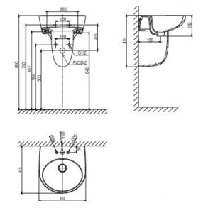- Kích thước lavabo: 415 x 410 x 182 mm