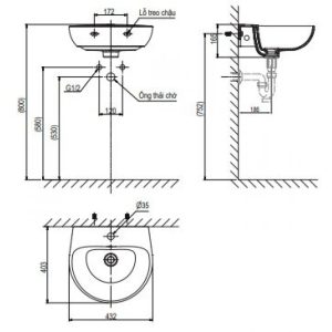 Bản vẽ kích thước lavabo V523 Viglacera