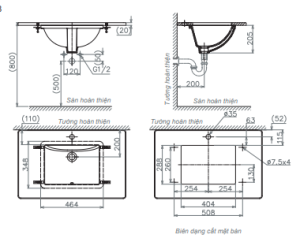 Bản vẽ kích thước chậu lavabo Viglacera US 1