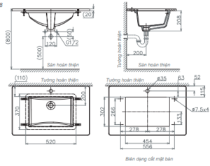 Bản vẽ kích thước chậu lavabo Viglacera US 2