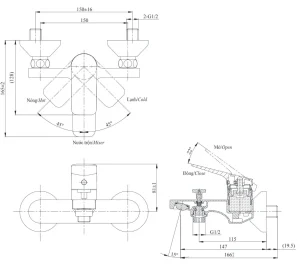 Bản vẽ kích thước củ sen Toto TTMR302 V