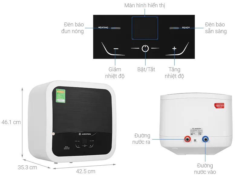 - Máy nước nóng gián tiếp Ariston, công suất làm nóng đến 2500W