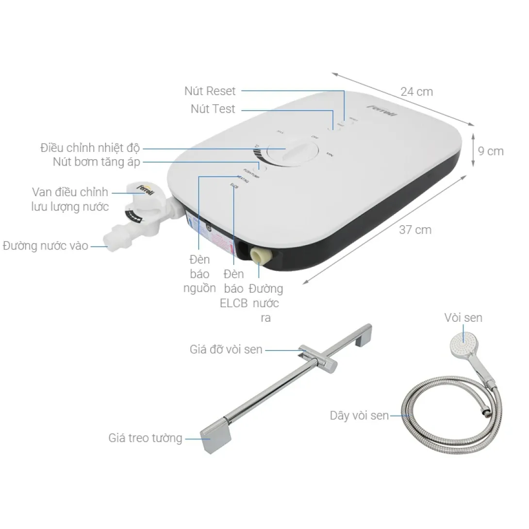- Loại máy: máy nước nóng trực tiếp Ferroli
