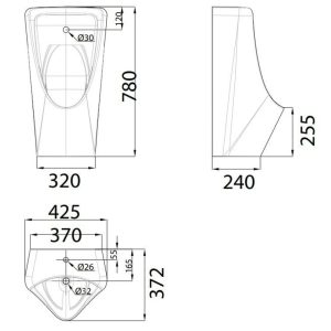 Bản vẽ kích thước bồn tiểu cảm ứng WP6519-DC American PIN