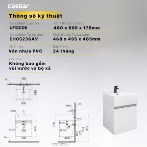 Thông tin bộ tủ chậu rửa mặt Caesar LF5236/EH05236AV