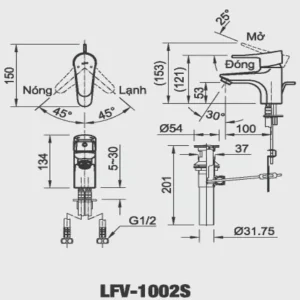 Bản vẽ kỹ thuật vòi lavabo inax LFV1002S nóng lạnh