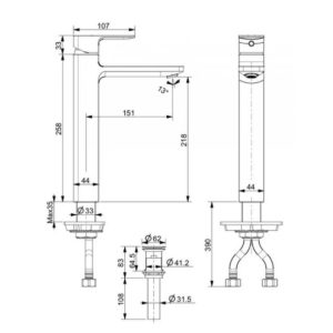 Bản vẽ vòi chậu lavabo American WF-1302