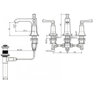 Bản vẽ kích thước vòi lavabo American WF1603 3 lỗ
