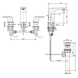 Bản vẽ kích thước vòi lavabo American WF1703 3 lỗ