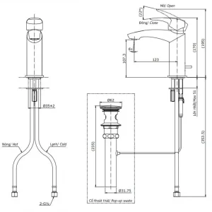 - Áp lực nước: 0.05MPa ~ 0.75MPa
