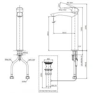Thông số kỹ thuật vòi chậu rửa mặt TOTO TLG09305V nóng lạnh