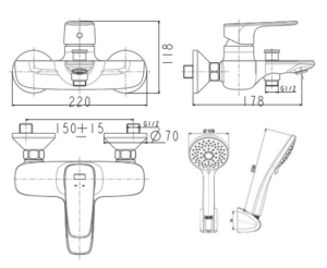Bản vẽ vòi tắm sen American Standard WF1711NWS nóng lạnh