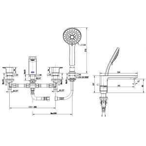- Tên sản phẩm: Vòi xả bồn tắm 4 lỗ
